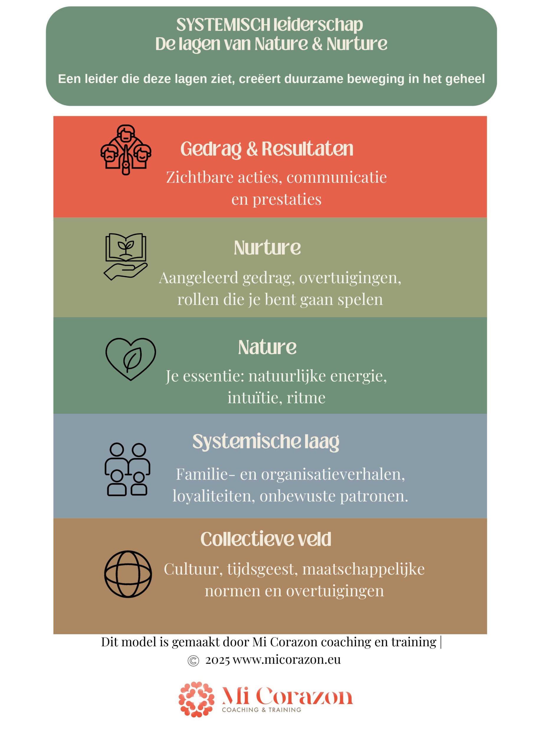 Met mijn 5-lagenmodel voor systemisch leiderschap maak ik zichtbaar wat er écht speelt zodat er ruimte komt voor: